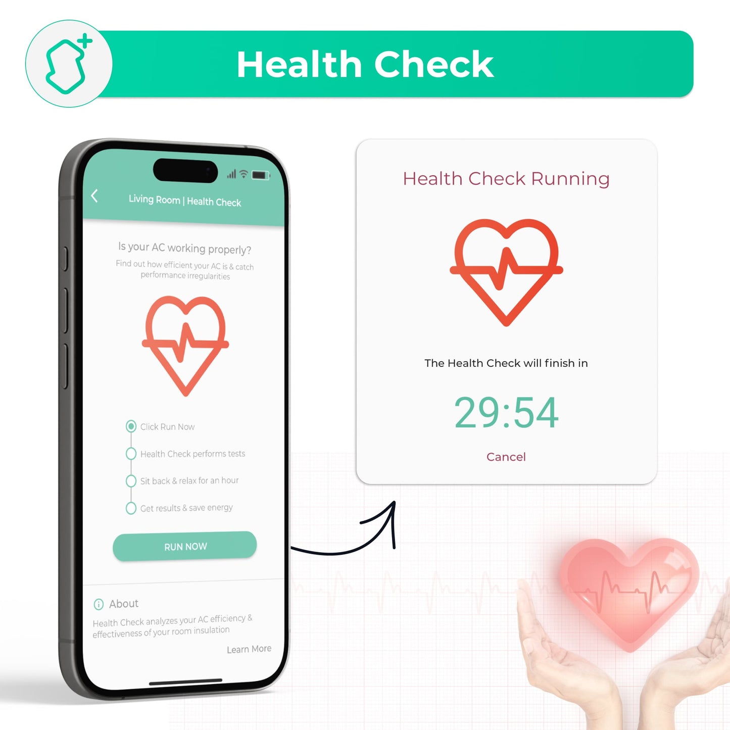 Our Health Check feature is designed to ensure your AC system is running at its best, prioritizing your comfort and well-being. With regular monitoring and real-time insights, you can easily identify any inefficiencies and optimize your system’s performance. This not only enhances the lifespan of your AC but also ensures a healthier indoor environment by maintaining ideal temperature and humidity levels.